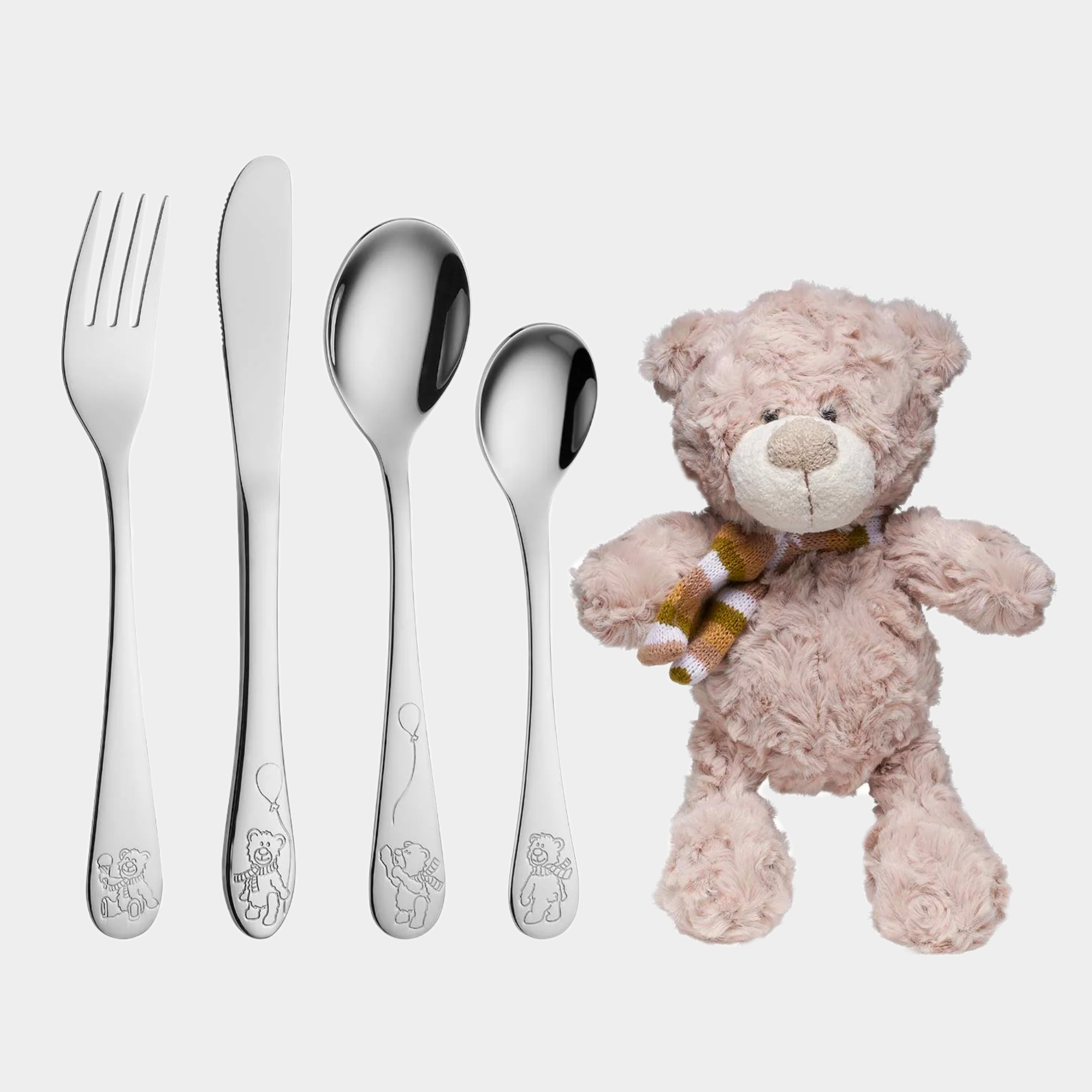 Gavesæt med bestik til børn inkl. sød Teddy bamse