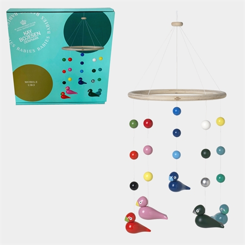 Køb den flotte uro Multi Babies fra Kay Bojesen i FSC certificeret malet bøg. Uroen er dekoreret med fine sangfugle i miniformat og trækugler, der er malet i flotte farver.