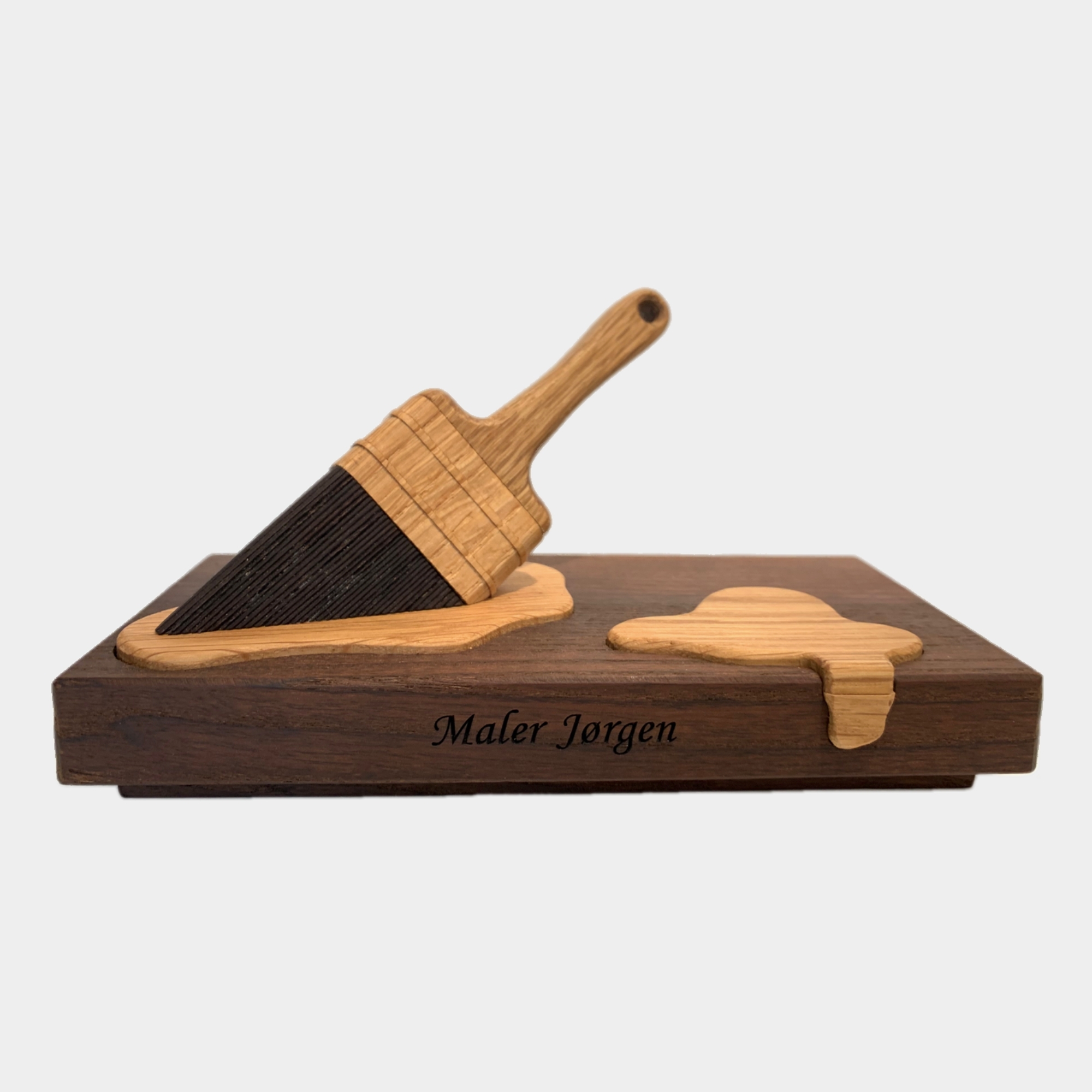 Er du på jagt efter den perfekte gave til den udlærte maler? Så skal du ikke lede længere. Denne kreative og flotte designfigur "Maleren" er skabt af danske Maja Soele som en hyldest til den faglærte håndværker. Figuren er fremstillet i lys ask og mørkebrun egetræ som er 100% FSC certificeret. Produktet ligger i original emballage fra Maja Soele med en tekst på, der hylder malerens vigtige arbejde.