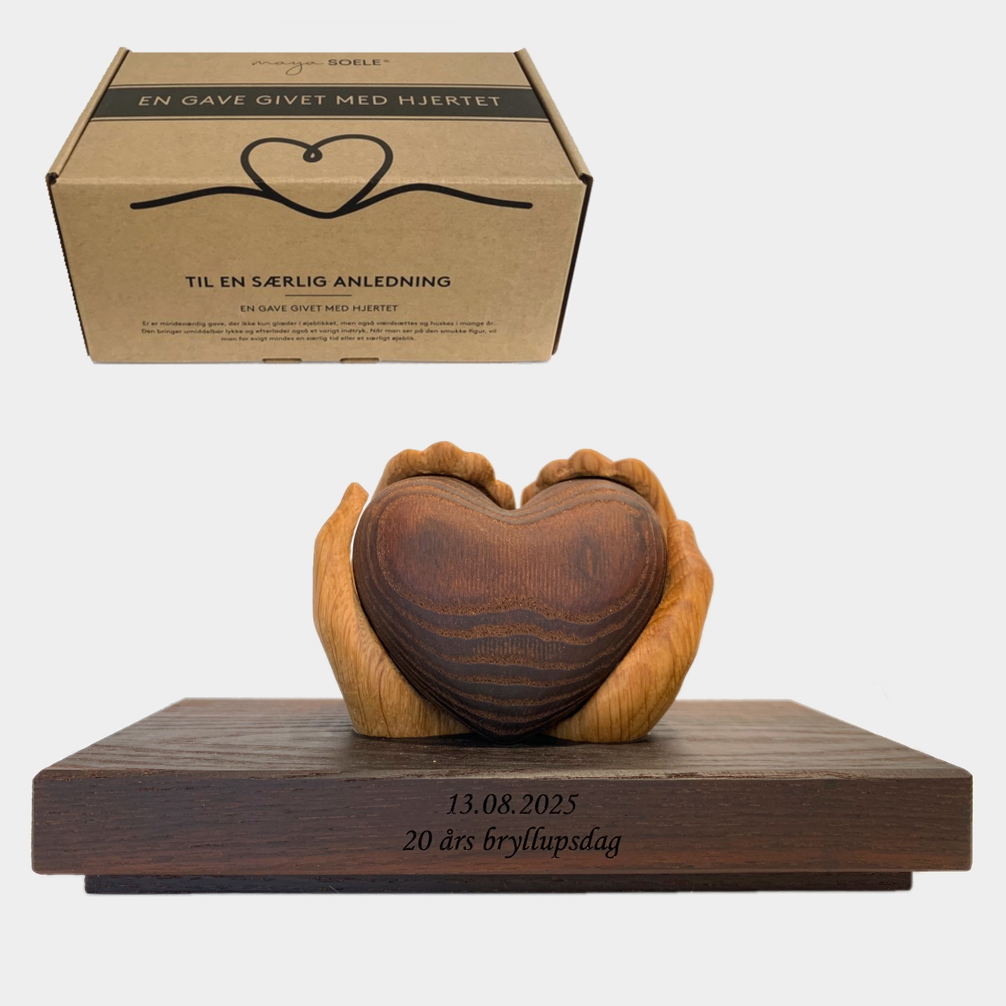 En flot og symbolsk træfigur med hjertet i centrum er velegnet som fx. bryllupsgave eller som en gave givet i kærlighed til bryllupsdage, mors dag og meget mere. Fortolkningen er helt op til gavegiveren. Æsken signalerer, at det er en gave givet med hjertet i en særlig anledning.