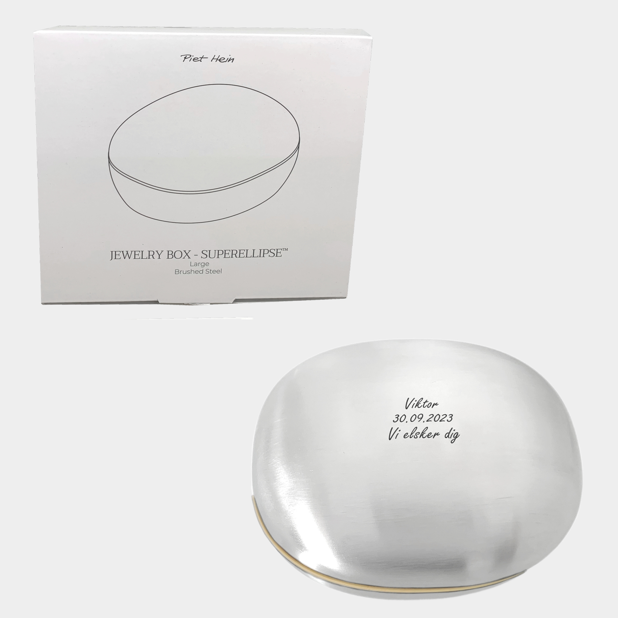 Piet Hein Smykkeskrin børstet stål stor - gratis gravering